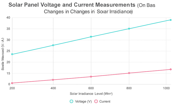 Data: In a hypothetical scenario, voltage and current measurements by solar irradiance levels:
