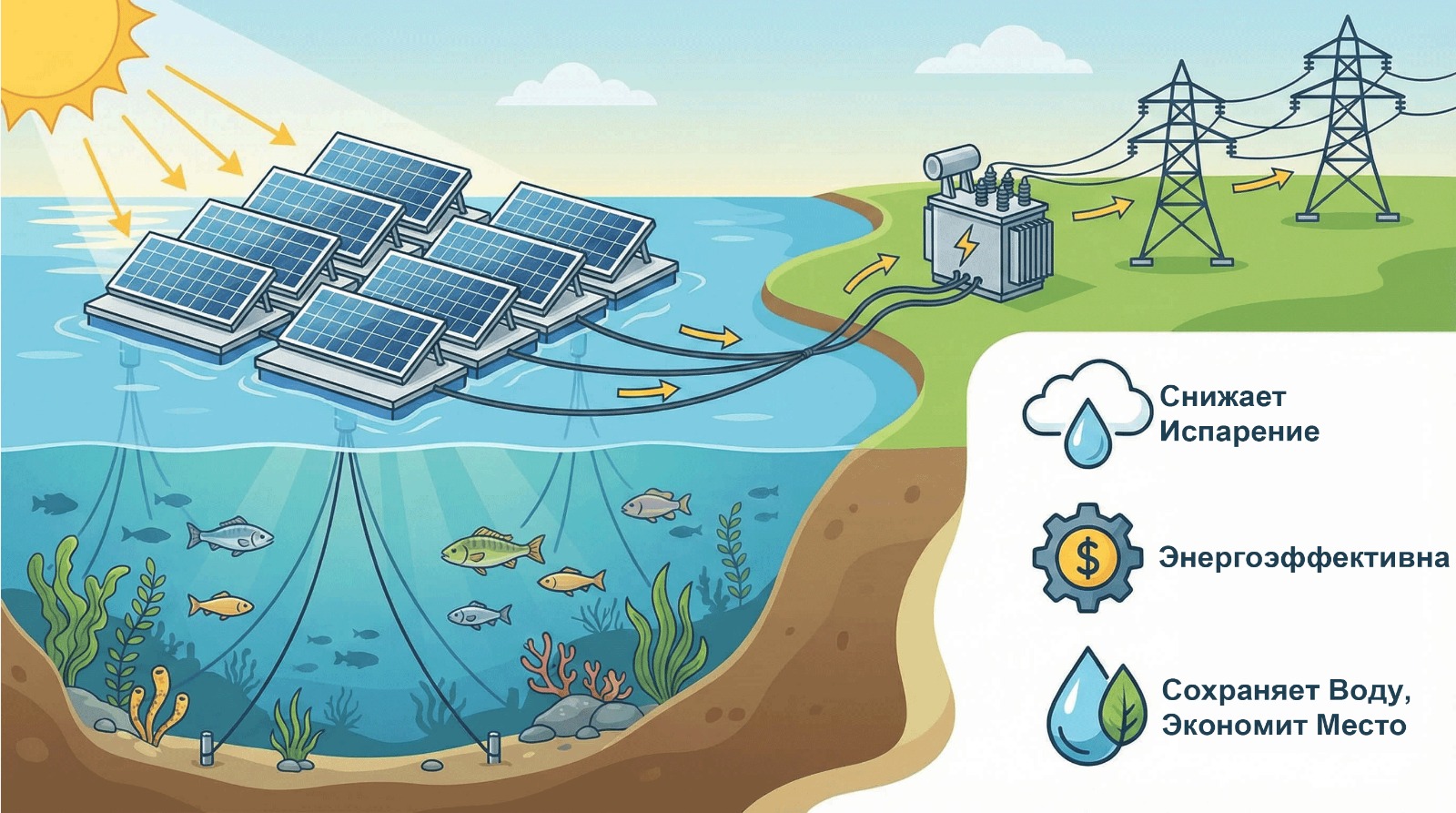 - Сохранение водных ресурсов: панели покрывают поверхность воды и значительно сокращают испарение, что особенно важно для поддержания уровня воды в засушливых регионах.